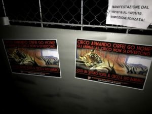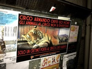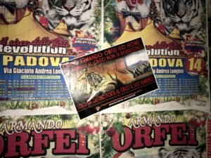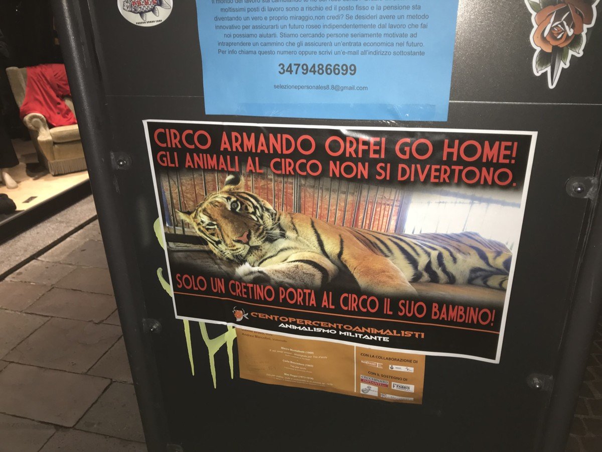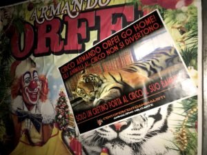 Il circo Orfei arriverà a Padova a fine mese. Intanto i circensi hanno iniziato ad affiggere manifesti in città. Vero che un sindaco non può impedire ai circhi di fermarsi; ma può esigere l’applicazione delle nome già esistenti, che fissano i requisiti minimi riguardo le affissioni, la condizione degli Animali. Poiché nessun circo spesso non li possiede, questo sarebbe sufficiente a tener lontano un mondo crudele, fuori del tempo, diseducativo quale è il circo con Animali.