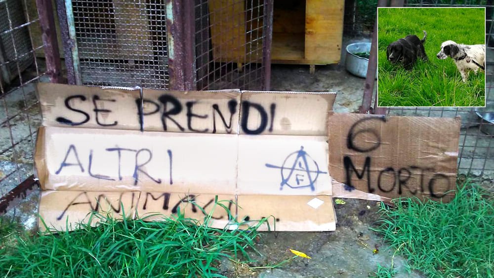 Sul posto anche una firma che in realtà è una minaccia: “Se prendi altri animali sei morto”, si legge a fianco del marchio di Alf, l’acronimo di Animal Liberation Front, il fronte di liberazione animale che opera a livello internazionale. Circostanza che è tutta da verificare: non è detto che la rivendicazione sia originale.