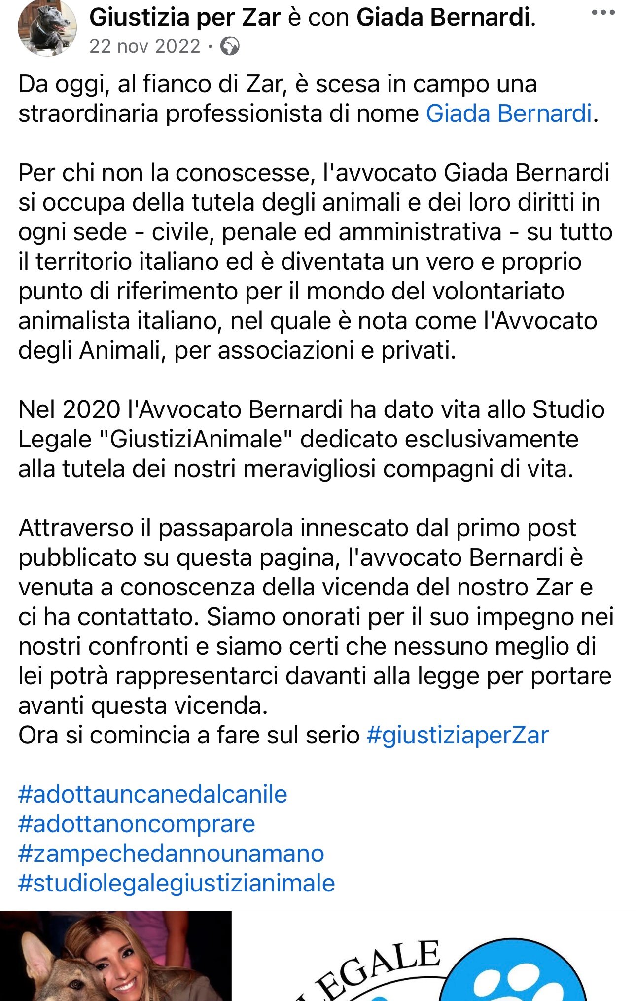 Lasciamo ai posteri l’ardua sentenza, noi vogliamo ricordare il povero Zar come vera e unica vittima di questa campagna diffamatoria, poiché riteniamo vergognoso strumentalizzare la morte di un animale innocente.