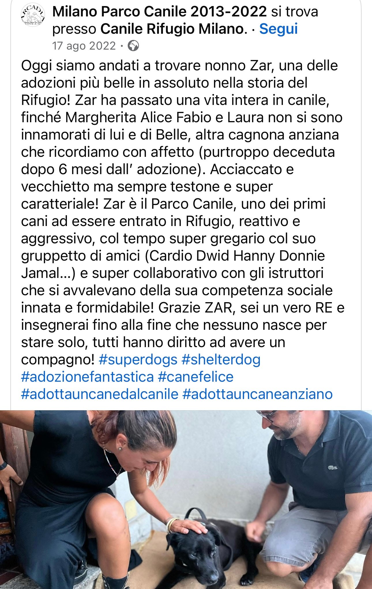 Ora pubblichiamo un po’ di ricordi dei proprietari presi dalla pagina “giustizia per Zar” Alcuni cretini che hanno commentato il post ridicolo dei disagiati, hanno accusato i proprietari di Zar di non curarsi di lui. Pensate che hanno fatto pure i complimenti ai tre animalari per aver dato da mangiare a quella povera vittima innocente.