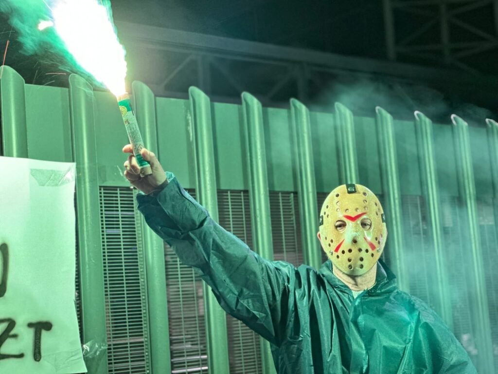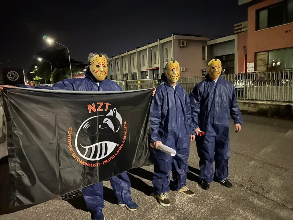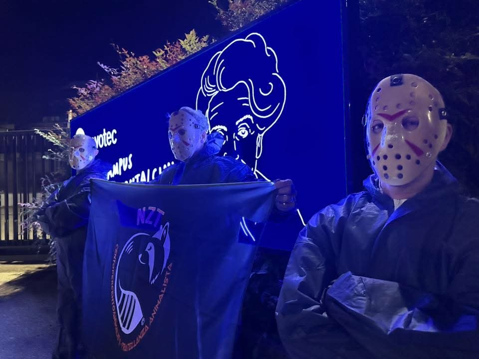 I Militanti, travestiti da “Jason”, hanno acceso dei fumogeni verdi collegati alla speranza che il TAR di Roma il 10 giugno (saremo presenti), annulli la deportazione dei 1.600 Beagle destinati ai laboratori.