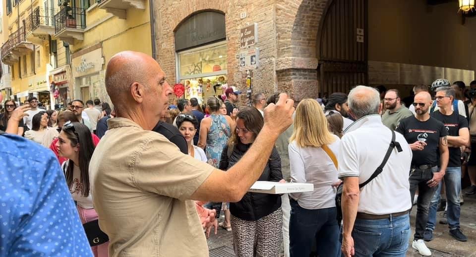 L’azione è stata accolta con approvazione e simpatia dai molti presenti, turisti e veronesi.