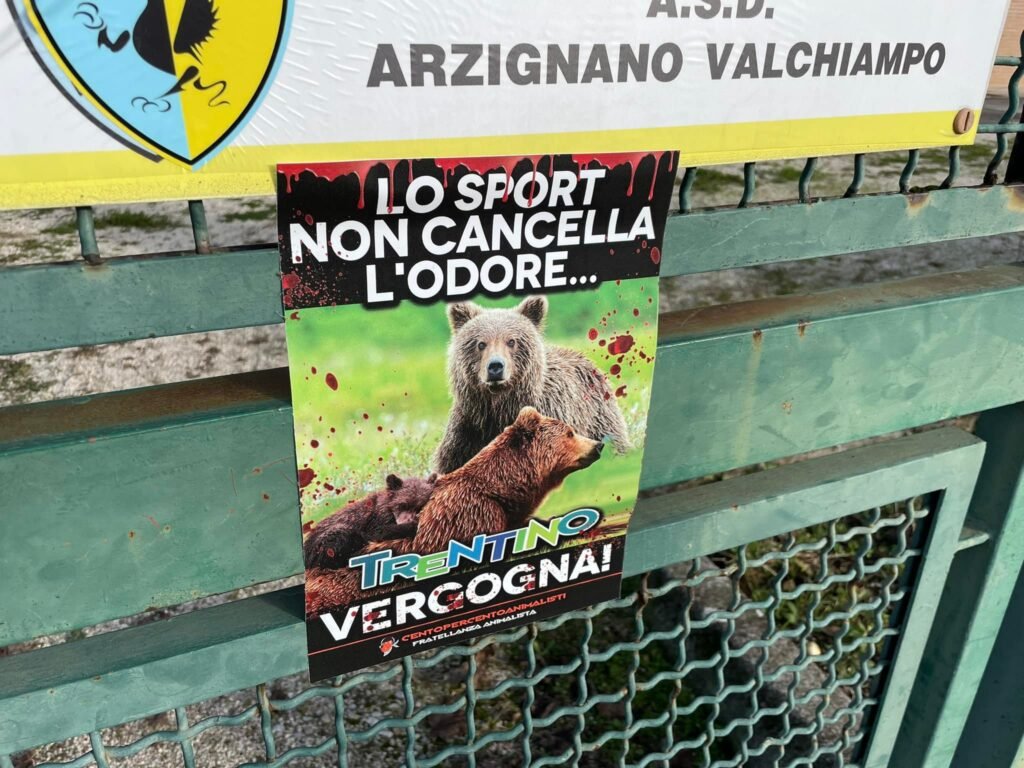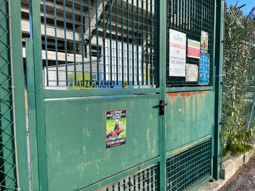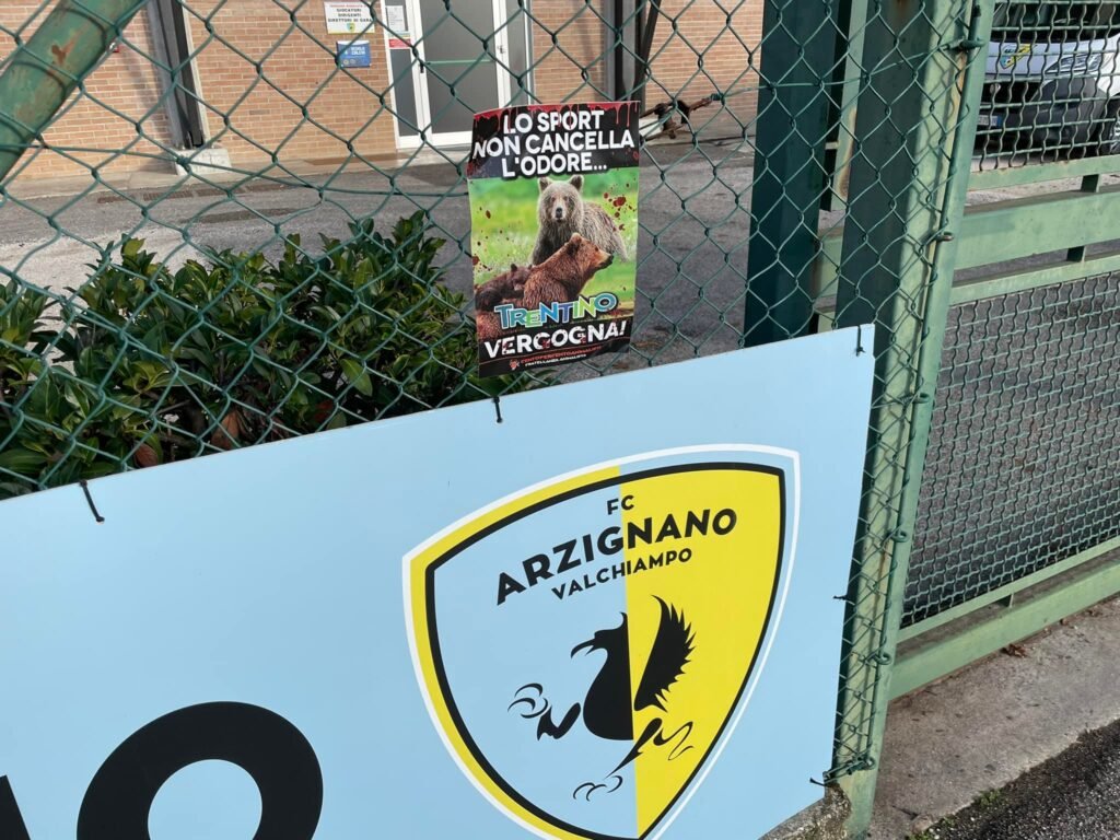 Domenica 5 dicembre, il Levico Terme giocherà in casa della capolista Arzignano (Vicenza). I nostri Militanti quindi, lunedì pomeriggio 29 novembre, hanno affisso sui cancelli dello stadio “dal Molin” manifesti adesivi, per ricordare le nefandezze compiute in Trentino, contro Orsi, Cervi, e di recente anche contro i poveri Cormorani.