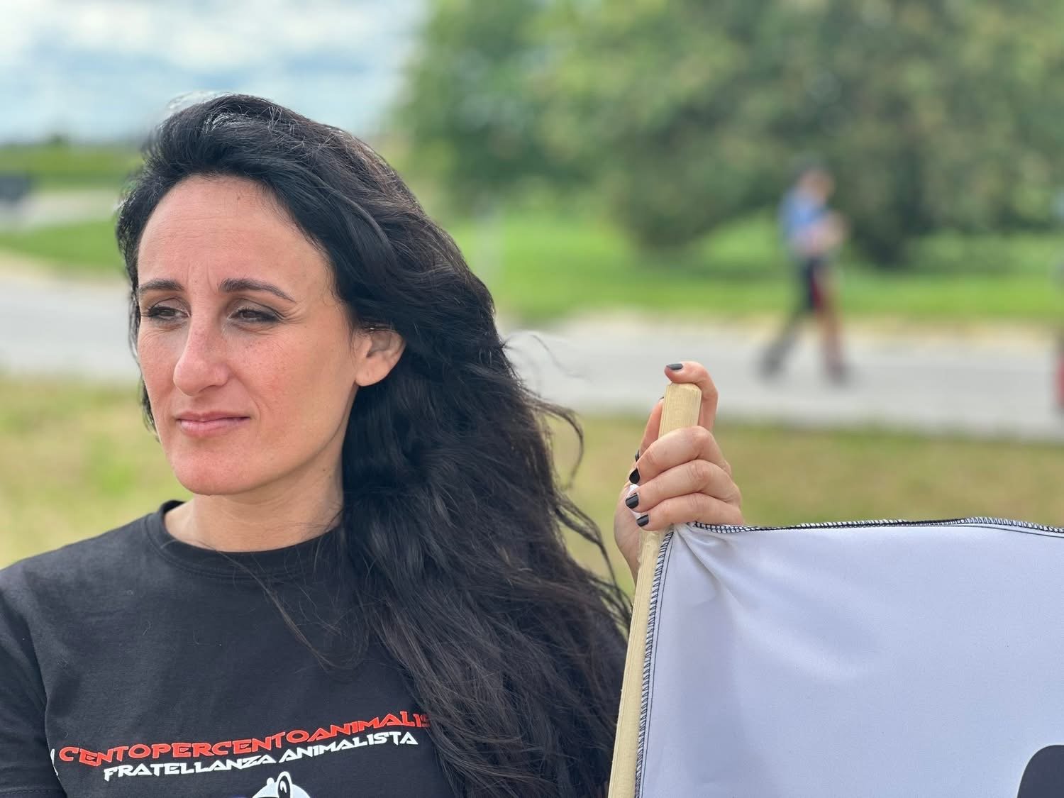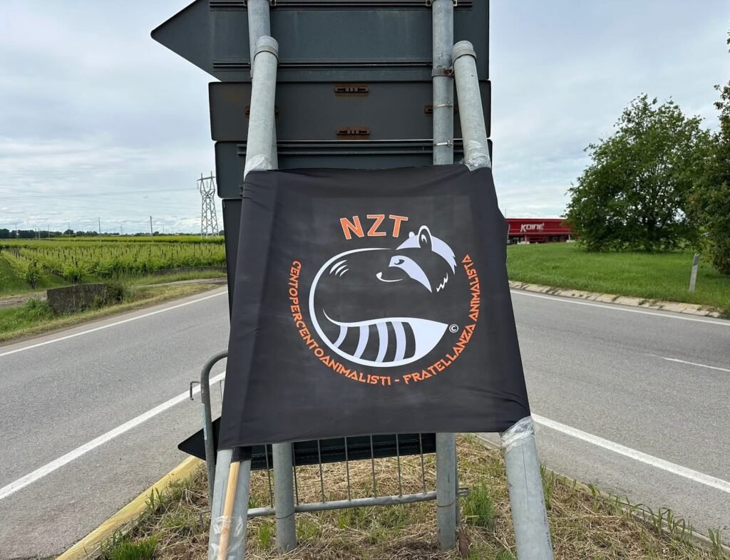 Venerdì 23 maggio militanti di CENTOPERCENTOANIMALISTI hanno esposto un enorme striscione in italiano e in inglese al passaggio del Giro d’Italia in località Belfiore, in provincia di Verona.