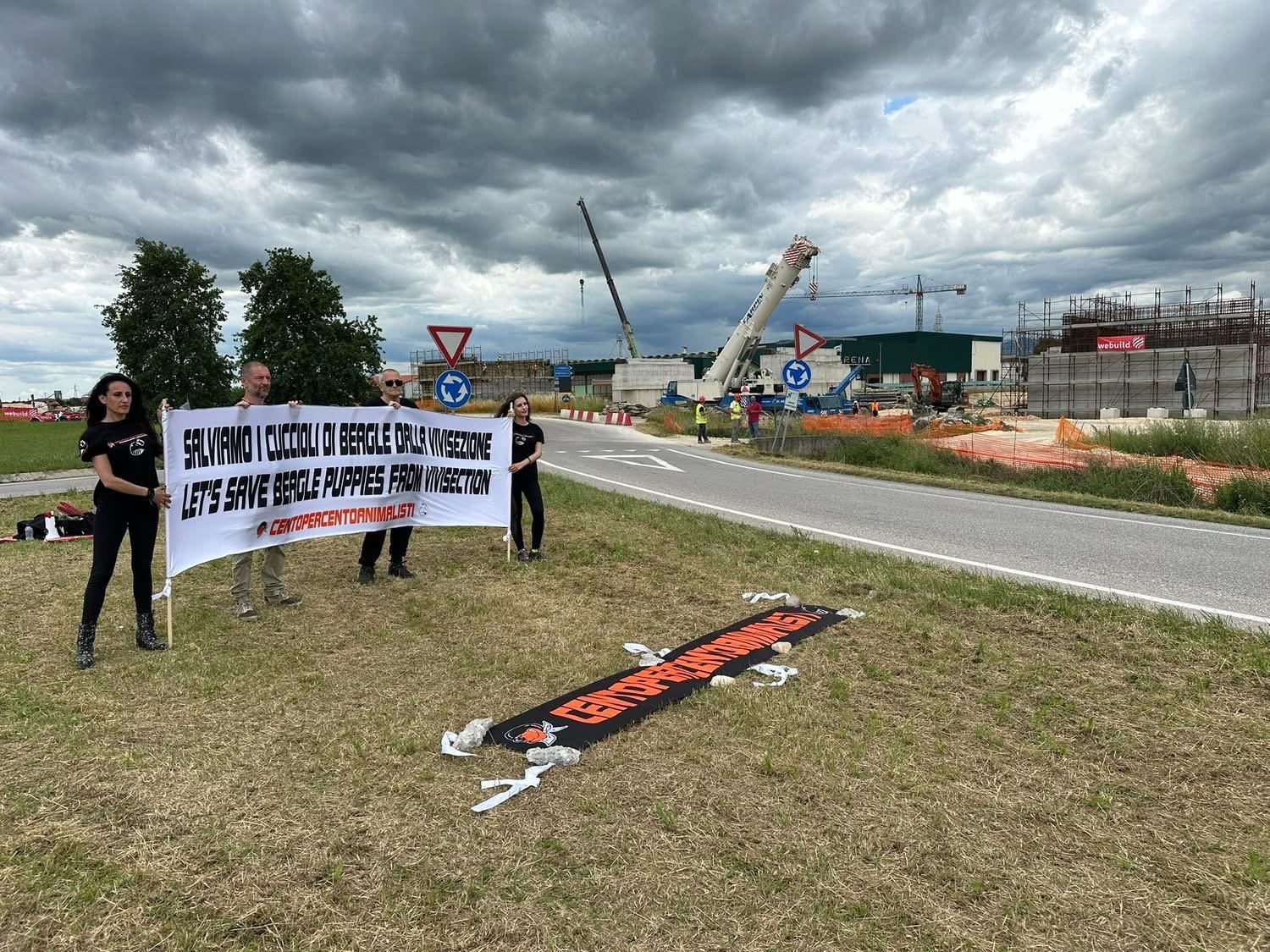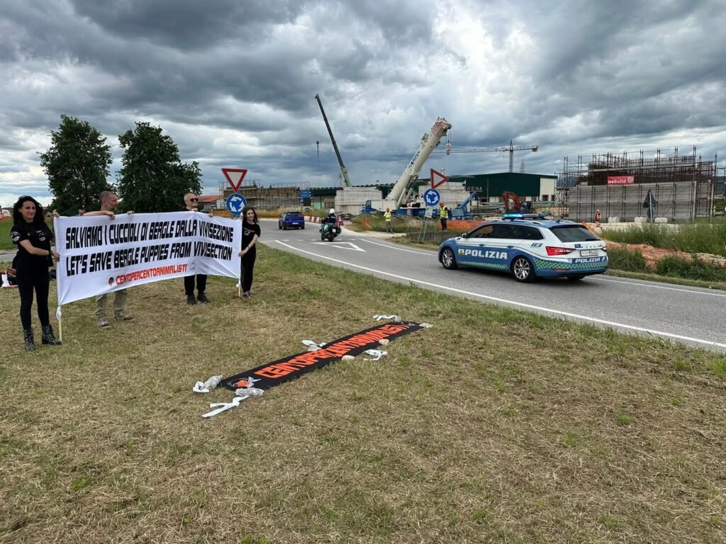 Scopo dell’azione è utilizzare la visibilità data al Giro per tenere viva l’attenzione sulla sorte dei 1600 cuccioli di Beagle che rischiano di venir deportati nella struttura di Aptuit – Evotec di Verona, per venir sottoposti a sperimentazione: cioè torture e morte, in nome di una pratica crudele e inutile sostenuta solo dal giro di affari che le sta dietro.