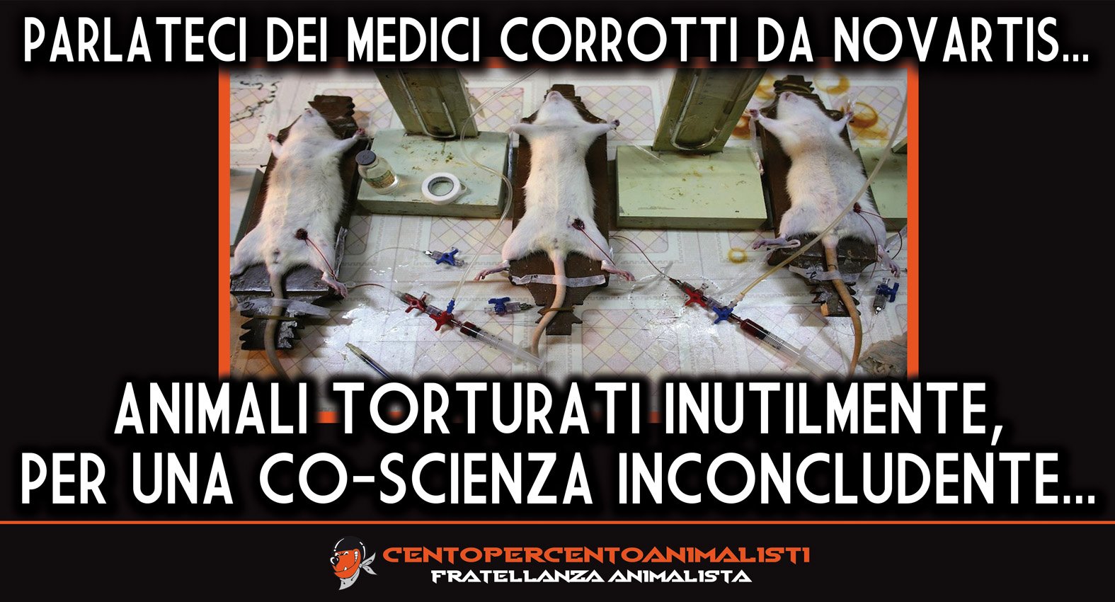 Le case farmaceutiche hanno sempre fatto “regali” a molti medici, ma qui è un fenomeno di dimensioni colossali. Novartis opera anche in settori collaterali: OGM, fitosanitari, agricoli. Come metodo di lavoro, usa abbondantemente la cosiddetta “sperimentazione animale”, cioè la vivisezione. Attua esperimenti definiti “estremi”, e una buona percentuale sono eseguiti senza anestesia. Alle case farmaceutiche la sofferenza degli Animali importa quanto la salute degli umani: nulla.