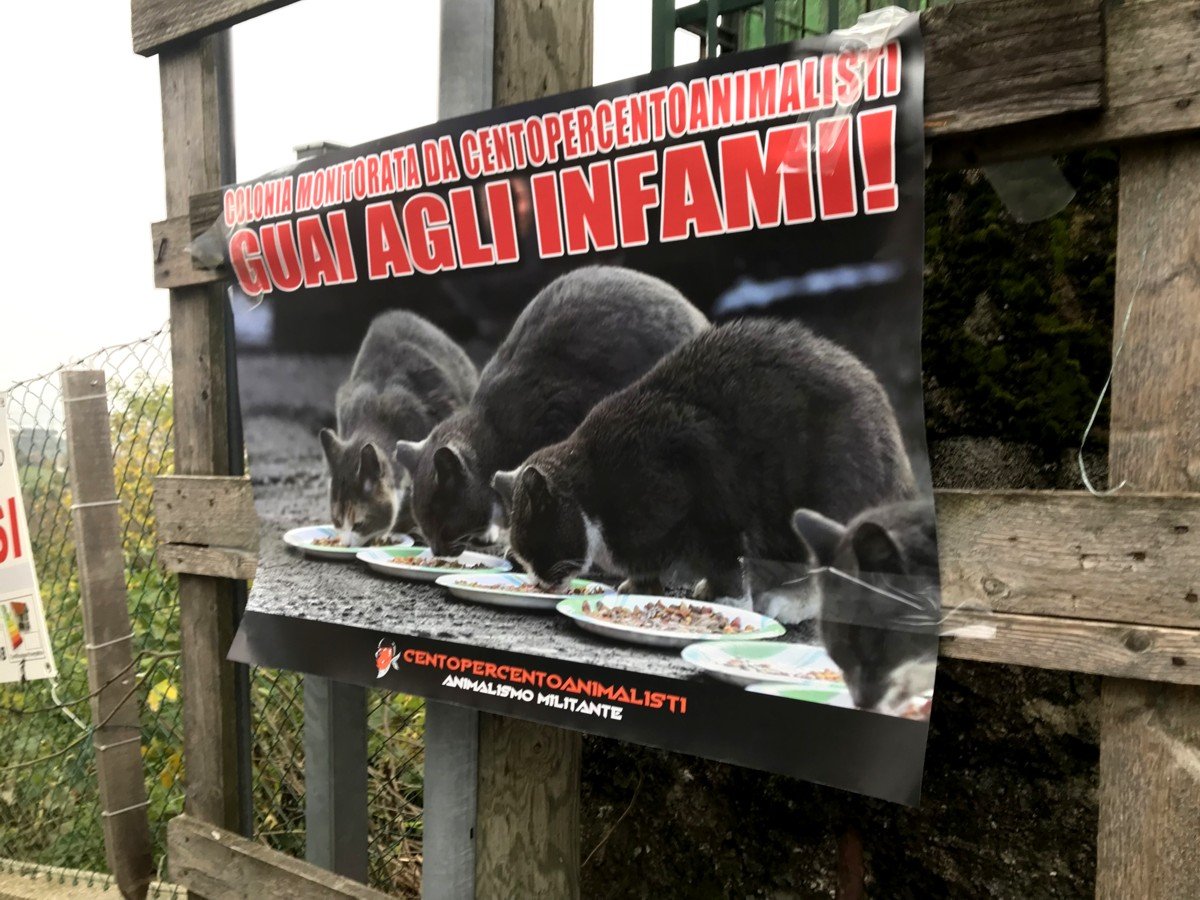 Sabato 10 novembre militanti di CENTOPERCENTOANIMALISTI hanno tenuto un presidio a Calaone di Baone (Padova), alla colonia felina i cui Gatti, e la persona che li aiuta, sono oggetto di minacce e vandalismi da parte di una persona evidentemente frustrata e ignorante.