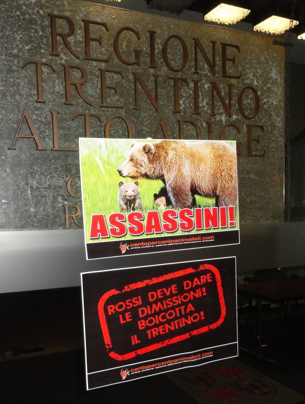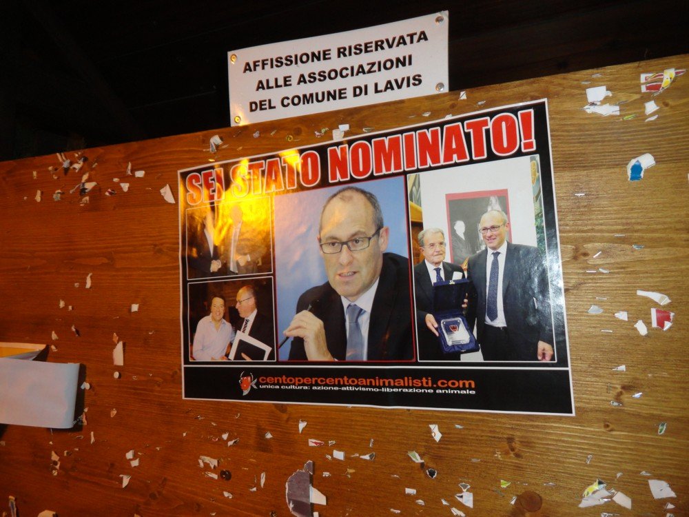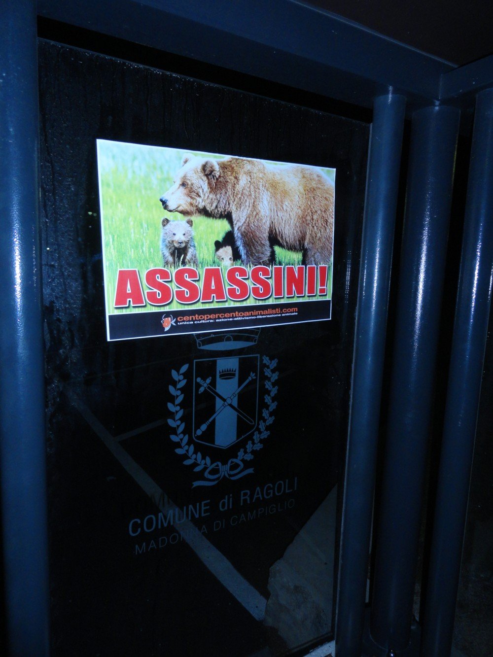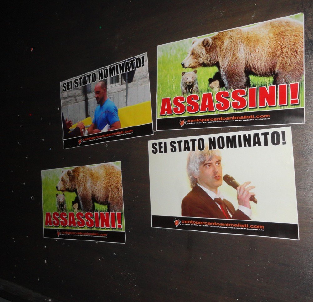 Centopercentoanimalisti da questa notte, dopo aver fatto sfogare per settimane gli animalisti inventati dell’ultima ora, ha ufficialmente dichiarato “vita dura” ai responsabili della fine di Daniza e relativa condanna a morte o schiavitù dei suoi cuccioli. Le nostre azioni di “disturbo” continueranno.