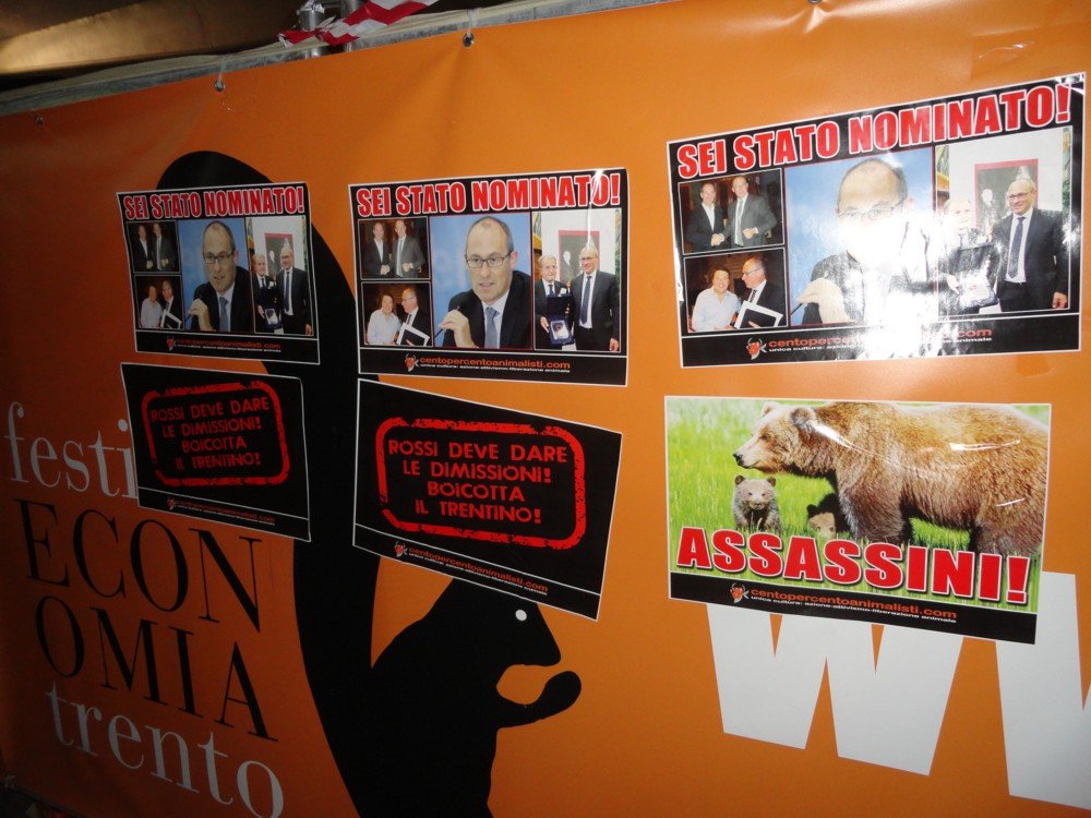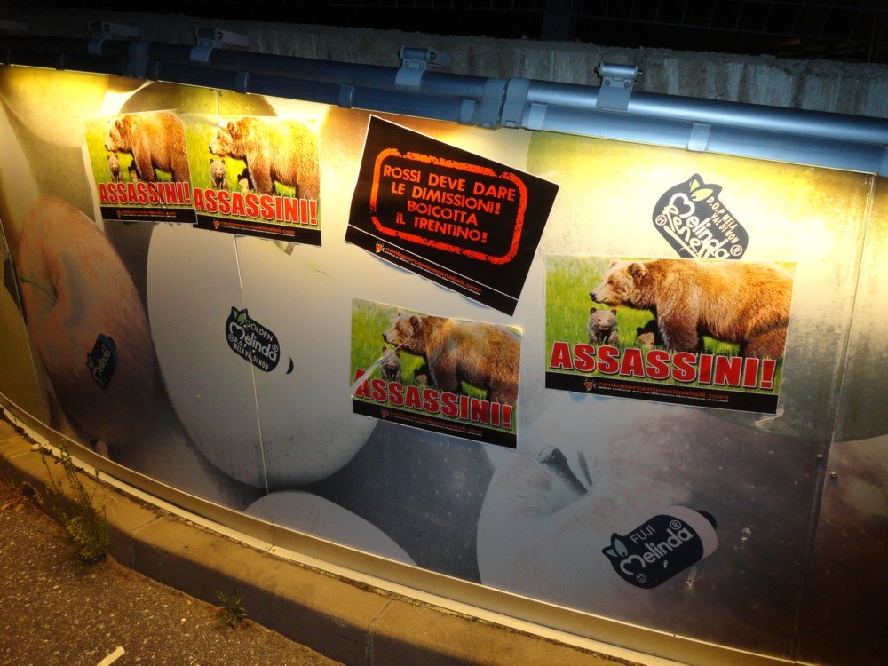 Nella notte tra il 22 e 23 settembre, militanti di Centopercentoanimalisti hanno inaugurato il boicottaggio del  Trentino affiggendo centinaia di locandine adesive personalizzate con le immagini di Ugo Rossi, il fungaiolo, il sindaco di Pinzolo, Daniza insieme ai suoi cuccioli e una di boicottaggio.