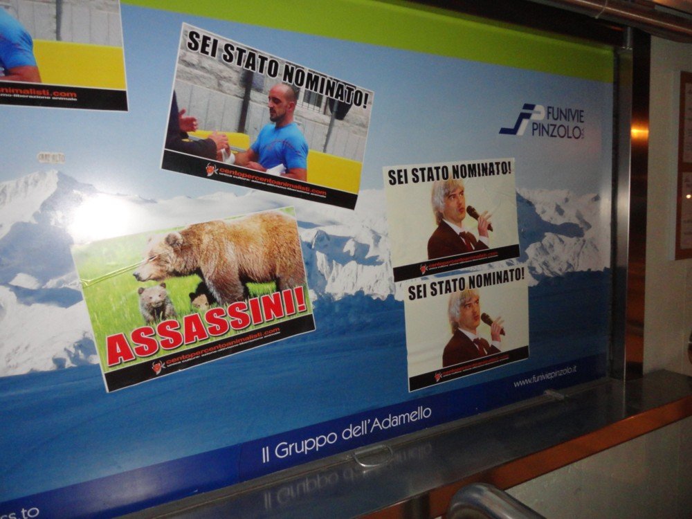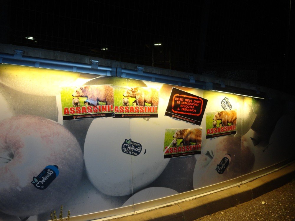 Tappezzati moltissimi luoghi del Trentino compresa Trento e Lavis (paese dove abita Rossi), molte zone tristemente famose alla cronaca nazionale della val Rendena, le funivie, la piazza del municipio e altri punti di Pinzolo, la sede del parco, Madonna di Campiglio… Colpite anche tre delle più note e prestigiose aziende orgoglio del Trentino, Foradori (Mezzolombardo), Rotari (Mezzocorona), Melinda (Cles).