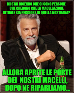 Centopercentoanimalisti ha sempre sostenuto che la macellazione Rituale non è diversa da quella Occidentale, quindi, oltre che a prendere le distanze da questi coglioni locali, ribadiamo che se qualche fan del palio di Feltre vuole gettare fango gratuito sul nostro Movimento, ai pennivendoli nostrani non pareva vero, se ne prenderà la responsabilità. Ci riserviamo di denunciare l’accaduto, i nostri avvocati sono già al lavoro.