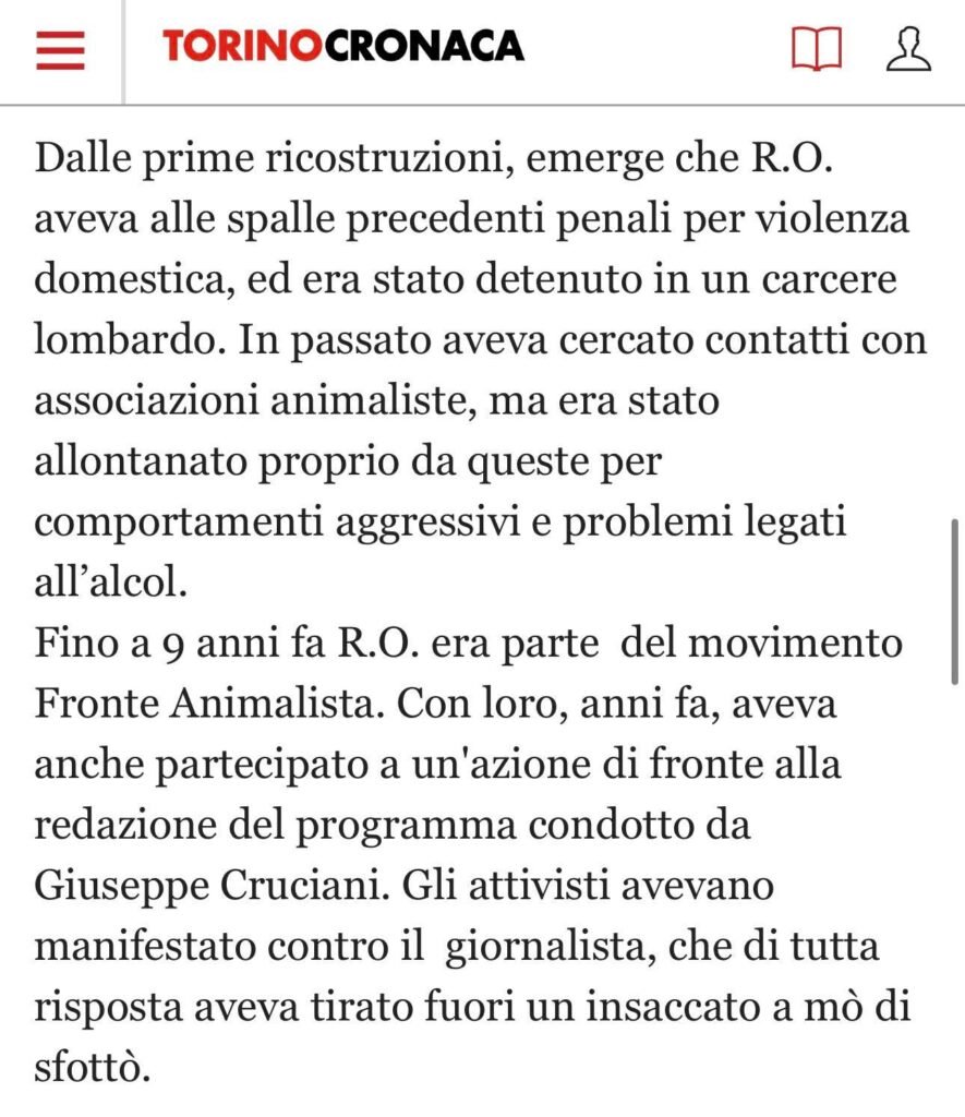 Qui la conferma che il tipo non faceva parte del nostro Movimento, ma del fronte animalaro.