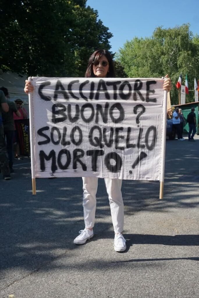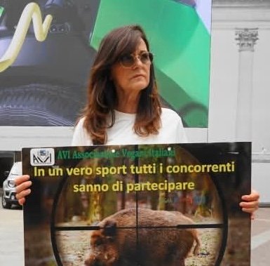 In quanto alla strega di Biancaneve, abbandonata dal marito (chissà come mai), che critica il nostro Movimento, le ricordiamo che lo striscione che tiene in mano con lo slogan “il cacciatore buono, è solo quello morto”, è stato coniato da noi. Cara Nicoletta Arnone alias Asia Sophia Mia, la invitiamo a non denigrare gli altri per l’età e l’aspetto fisico.