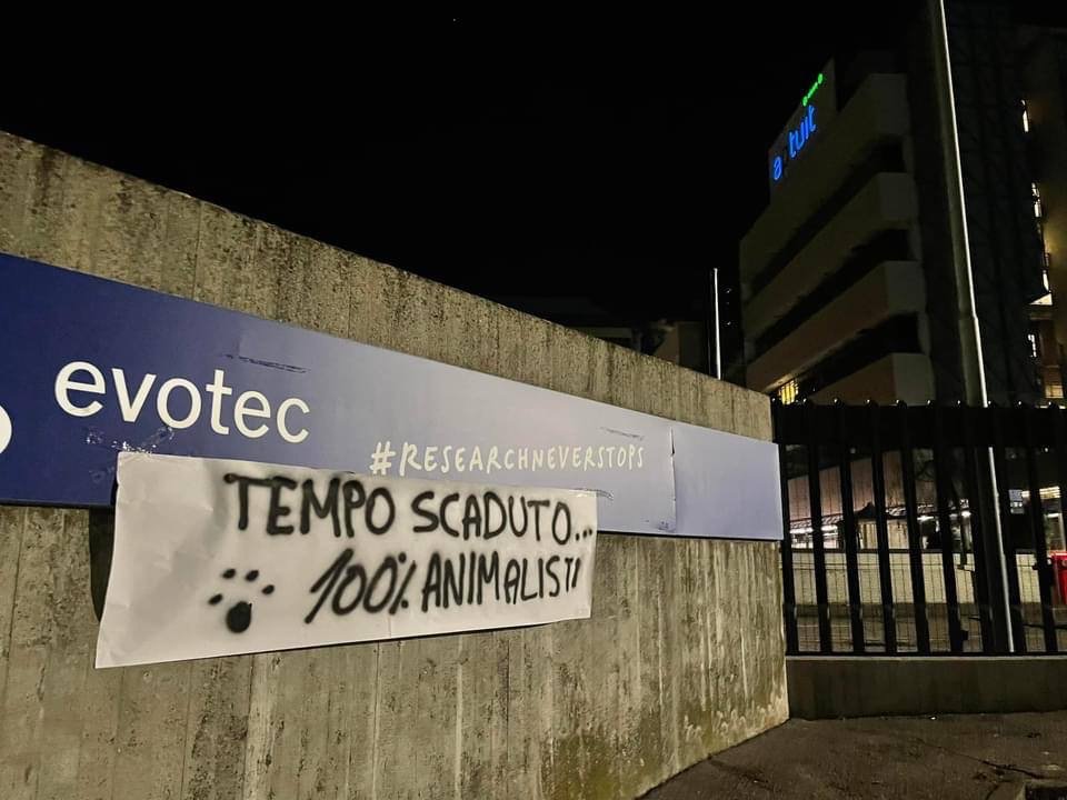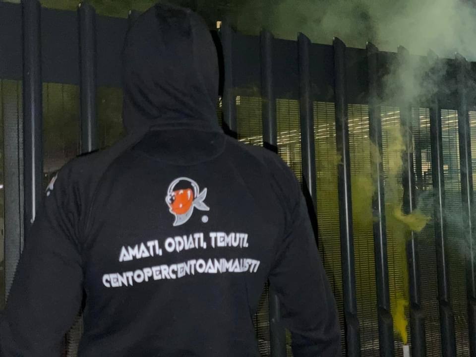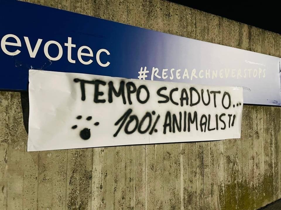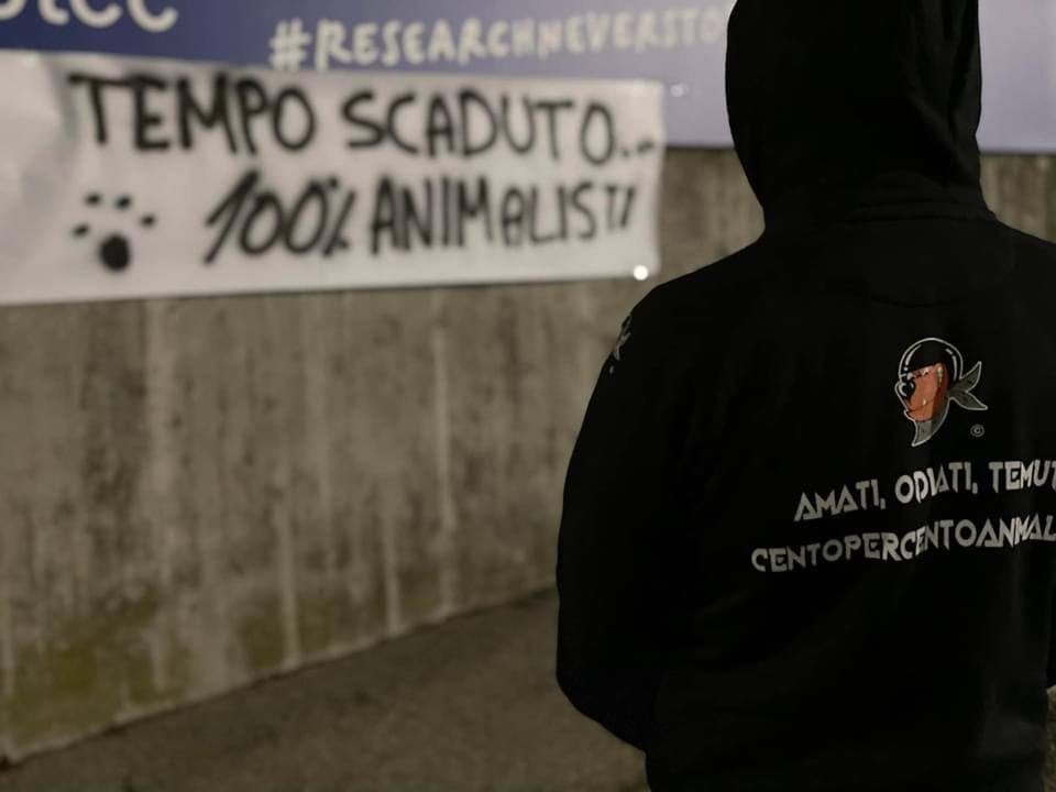 Lunedi sera 11 gennaio, ai cancelli di via Fleming militanti di CENTOPERCENTOANIMALISTI, accompagnati da una notevole accensione di fumogeni e lancio all’interno della struttura di carta igienica, hanno appeso uno striscione: “TEMPO SCADUTO”. Il senso è evidente: dopo diversi avvertimenti, ora l’azienda deve aspettarsi azioni ben più incisive, fino alla liberazione degli Animali e alla cessazione delle torture.