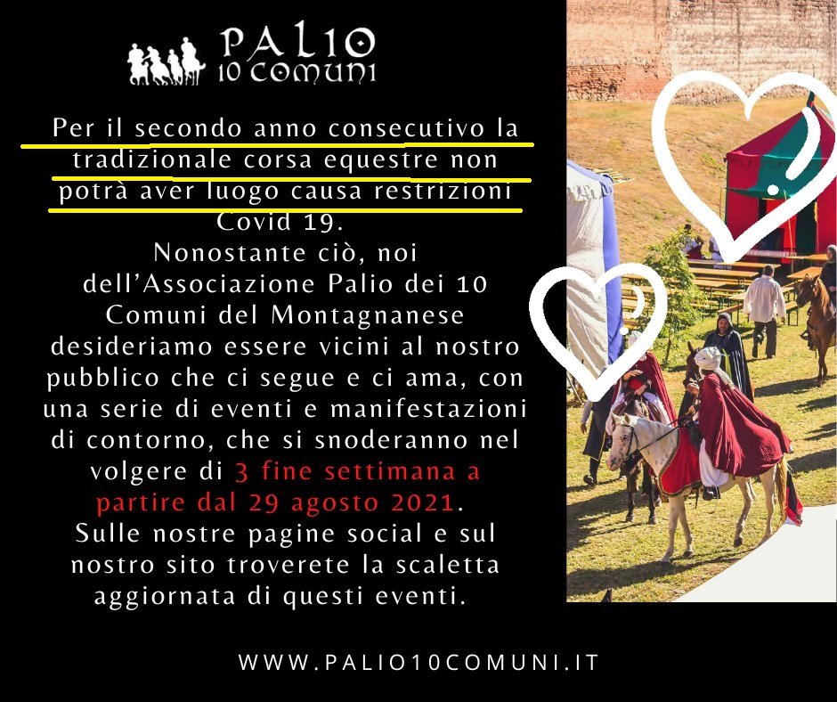 Il Palio di Montagnana anche quest’anno non si farà. Gli organizzatori, che fino a poco tempo fa sostenevano l’intenzione di farlo, ora ne hanno annunciato l’annullamento. Motivi addotti: le restrizioni relative al covid, etc.