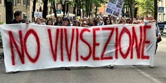 Quattro eventi a Verona, uno davanti ai laboratori di sperimentazione animale Aptuit e tre cortei nella città, che ha visto la partecipazione di numerose centinaia di persone con un crescendo costante di adesioni nell’arco di tempo di poco più di 6 mesi è il fermo segnale che la società civile e l’opinione pubblica vuole lanciare contro la vivisezione. L’immediato comunicato stampa dei vertici della multinazionale Aptuit, evidentemente preoccupati dell’opinione pubblica, nel tentativo di giustificare il loro operato, ne è la conferma.