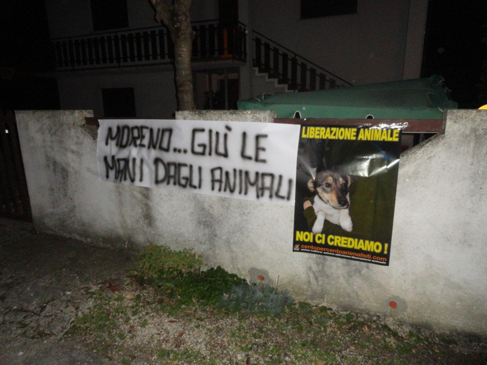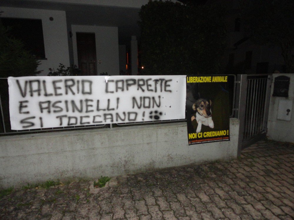 Per far capire a questi signori che Centopercentoanimalisti non intende farsi prendere in giro, ma soprattutto interessa solo ed esclusivamente il benessere degli animali di Matteo, nella notte tra il 26 e 27 ottobre, sui cancelli e ingressi delle abitazioni del sindaco Francesco Vezzaro, del vice sindaco Moreno Boschello e rispettivamente di tutti gli altri assessori del comune di Vigodarzere, Callegaro Fabrizio, Scotton Valerio, Zattarin Demetrio, sono stati affissi striscioni personalizzati e manifesti di liberazione animale. Altri striscioni sono stati affissi sui cancelli delle abitazioni dei vicini di Matteo intolleranti verso gli animali.
