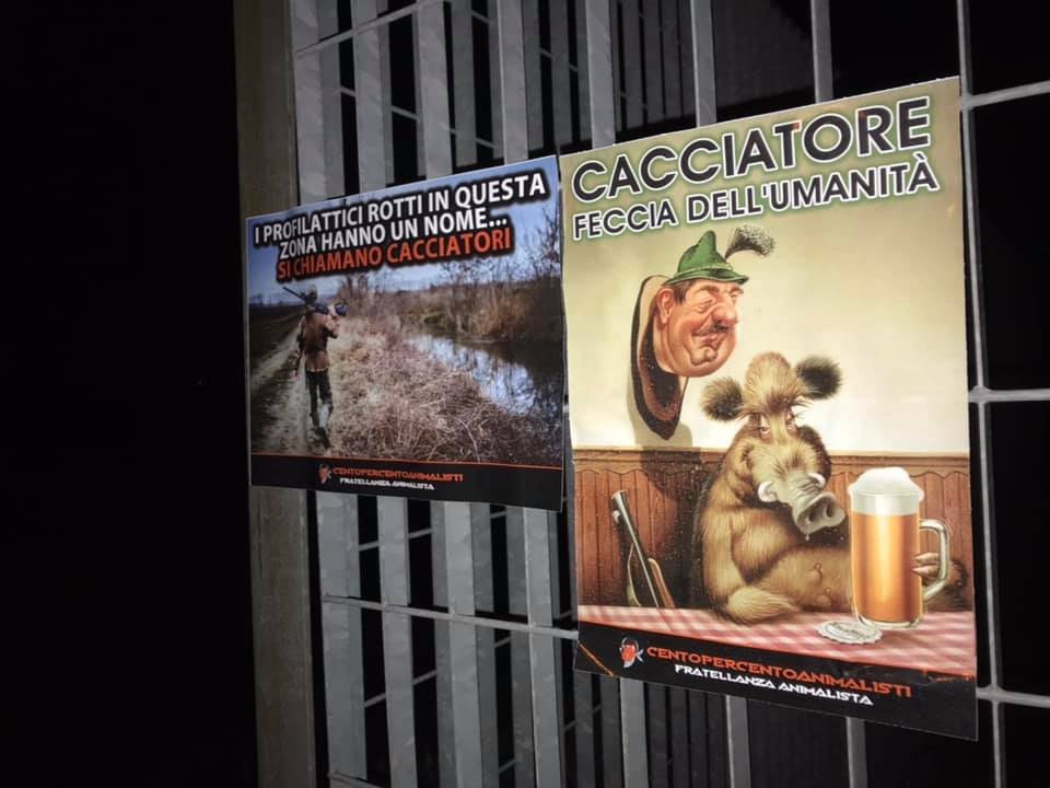 Nella notte tra il 9 e 10 ottobre, Militanti di Centopercentoanimalisti hanno affisso numerosi adesivi ironici e “speranzosi” a Gerenzano, Turate e Rovello, nelle zone dove i cacciatori prepotenti, infischiandosene delle regole, invadono i campi e sparano a pochi metri dalle case. I cittadini non ne possono più, gli Animali …
