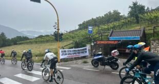 Martedì 27 maggio militanti di CENTOPERCENTOANIMALISTI hanno esposto un enorme striscione in italiano e in inglese al passaggio del Giro d’Italia in località Valsorda , in provincia di Trento. Purtroppo il ciclista Alessio Martinelli è precipitato di circa 6/8 metri proprio nella curva nei pressi della postazione dei Militanti. Dopo …