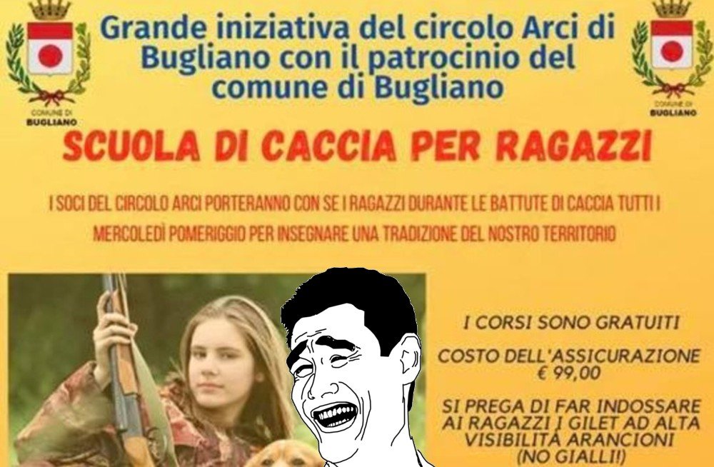 Nei giorni scorsi il fantomatico “comune di Bugliano” ha sparato l’ennesima bufalona: un corso di caccia per ragazzi dai 12 ai 18 anni. Chi poteva cascarci con tutte le scarpe? I “mitici” cacciatori creduloni (recidivi) di Migratoria. Quelli di “migratoria” sono cacciatori che conosciamo bene, vennero abbondantemente presi per il …