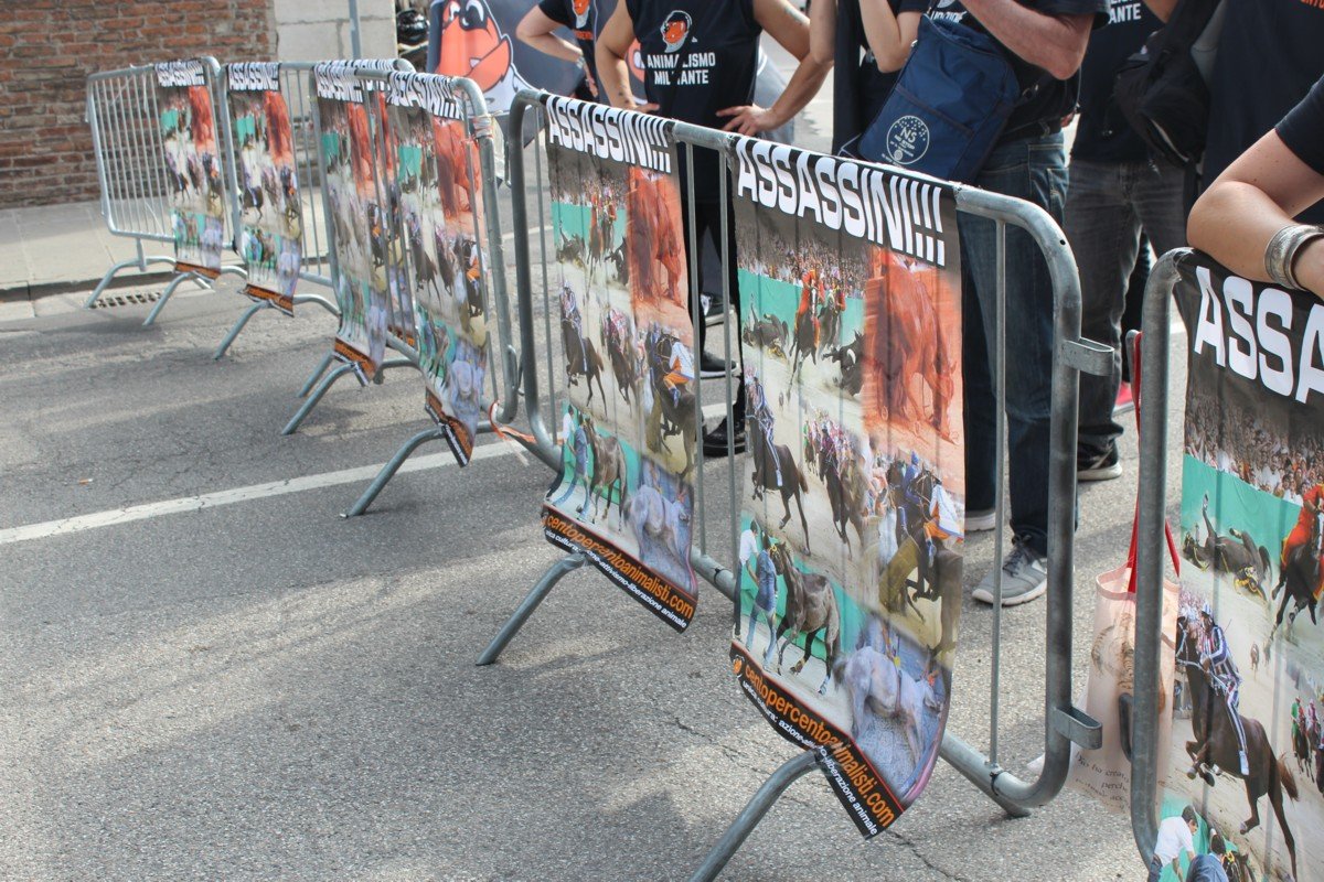 Domenica 27 maggio, Militanti di Centopercentoanimalisti hanno contestato il palio di Ferrara, tra cori, gavettoni e lanci di carta igienica, solo pochi momenti di tensione con qualche ubriacone di passaggio, tutti gli impavidi che nei giorni scorsi avevano minacciato azioni contro il presidio, nemmeno l’ombra. Duramente contestato al suo passaggio …