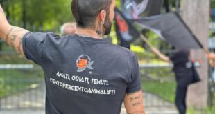 Martedì 27 maggio militanti di CENTOPERCENTOANIMALISTI hanno esposto un enorme striscione in italiano e in inglese al passaggio del Giro d’Italia in località Valsorda , in provincia di Trento. Purtroppo il ciclista Alessio Martinelli è precipitato di circa 6/8 metri proprio nella curva nei pressi della postazione dei Militanti. Dopo …