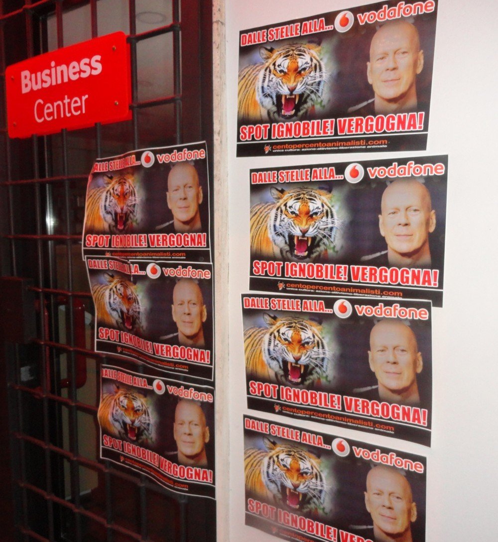 Nonostante lo striscione affisso al Vodafone Village di Milano sabato scorso, la Vodafone fa orecchie da mercante. Continua quindi, la protesta di Centopercentoanimalisti contro lo spot ignobile.