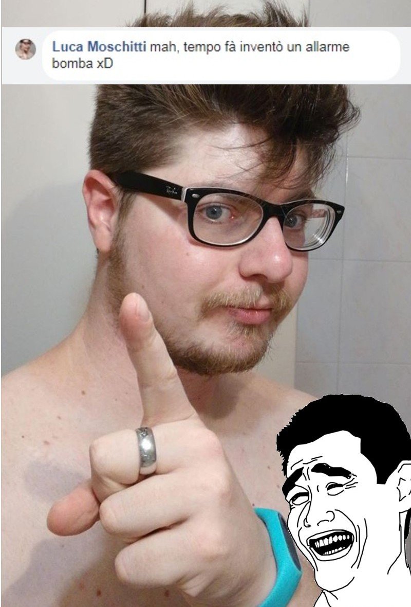Questo dalla faccia sveglia, tale Luca Moschitti, sostiene che io ho lanciato un allarme bomba per far rinviare un processo, va beh… qui ammetto che non posso infierire, che gli dico a uno così?