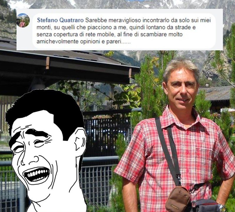 Questo con la camicia all’ultima moda realizzata con la tovaglia vecchia di casa, tale Stefano Quatraro, mi minaccia e mi invita tra le montagne. A bello de zio, a modaiolo, a stilista mancato, se mi fai avere il tuo indirizzo non mancherò.